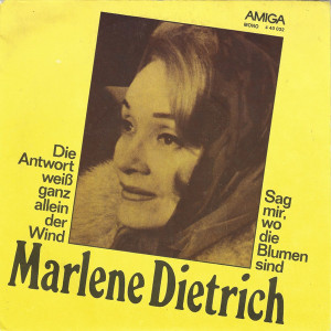 Marlenes deutsche Fassung von „Blowin‘ In The Wind“ – „Die Antwort, mein Freund, weiß ganz allein der Wind“ – erschien in Deutschland als Nachfolger ihres erfolgreichen „Sag mir wo die Blumen sind“ von 1962. Die Dietrich griff die Musik der kritischen amerikanischen Jugend auf und transportierte sie nach Europa. Der Autor der deutschen Übersetzung – Hans Bradtke- hat übrigens auch so unvergängliche Liedperlen wie „Pigalle“ oder „Die Zuckerpuppe von der Bauchtanzgruppe“ geschrieben, die zu der Zeit als Swing-Schlager für Bill Ramsey auf den Leib geschnitten wurden. Die Songs für die Dietrich waren dagegen ernste und getragene Chansons Denn noch waren Folk und Blues noch nicht so richtig in Deutschland angekommen.