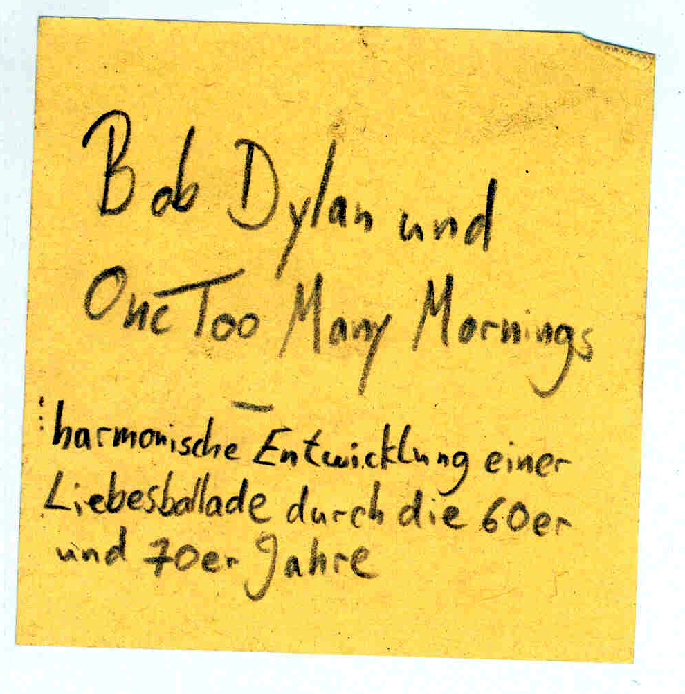 Die Frage ist aber nun: was macht Dylan mit diesem Song harmonisch sonst? Wie umspielt (oder auch vereinfacht) er One Too Many Mornings durch die 60er und 70er Jahre und in welchem Kontext passiert das?