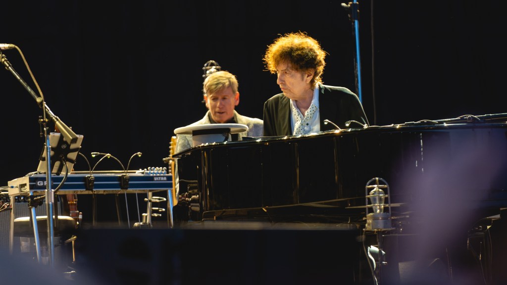 (Ganz konzentriert: Bob Dylan beim Konzert im Jahr 2019, 2024 sah alles ganz anders aus. Von Ralph PH, Quelle: WIkimedia Commons)